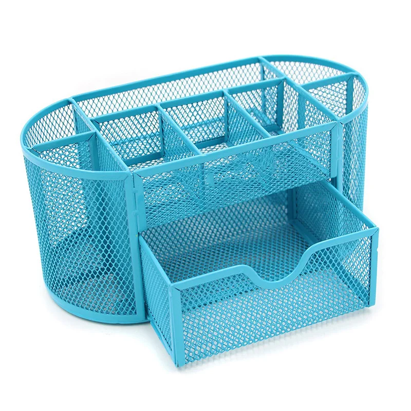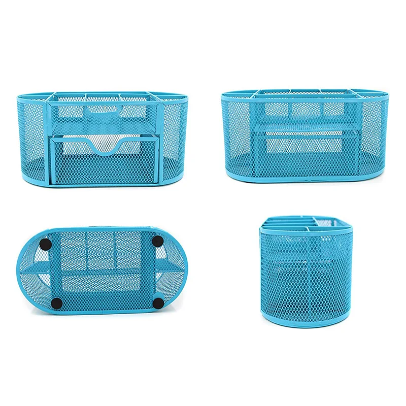 Best Quality Mesh Desk Organizer 9 Components Office Accessories Supply Caddy with DrawerBlue